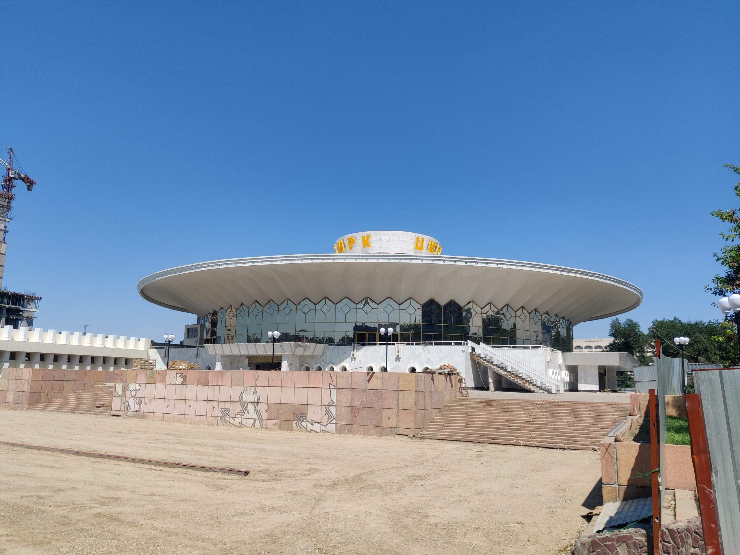 A short walk west leads you to the Kyrgyz State Circus, an iconic circular structure reflecting classic modernist architecture. Originally designed as a permanent space for traveling circuses, it remains a cultural landmark of Bishkek. Recently, it has undergone renovation, making sure the architectural marvel can be enjoyed for many generations to come. Continue walking westwards along Frunze Street.
