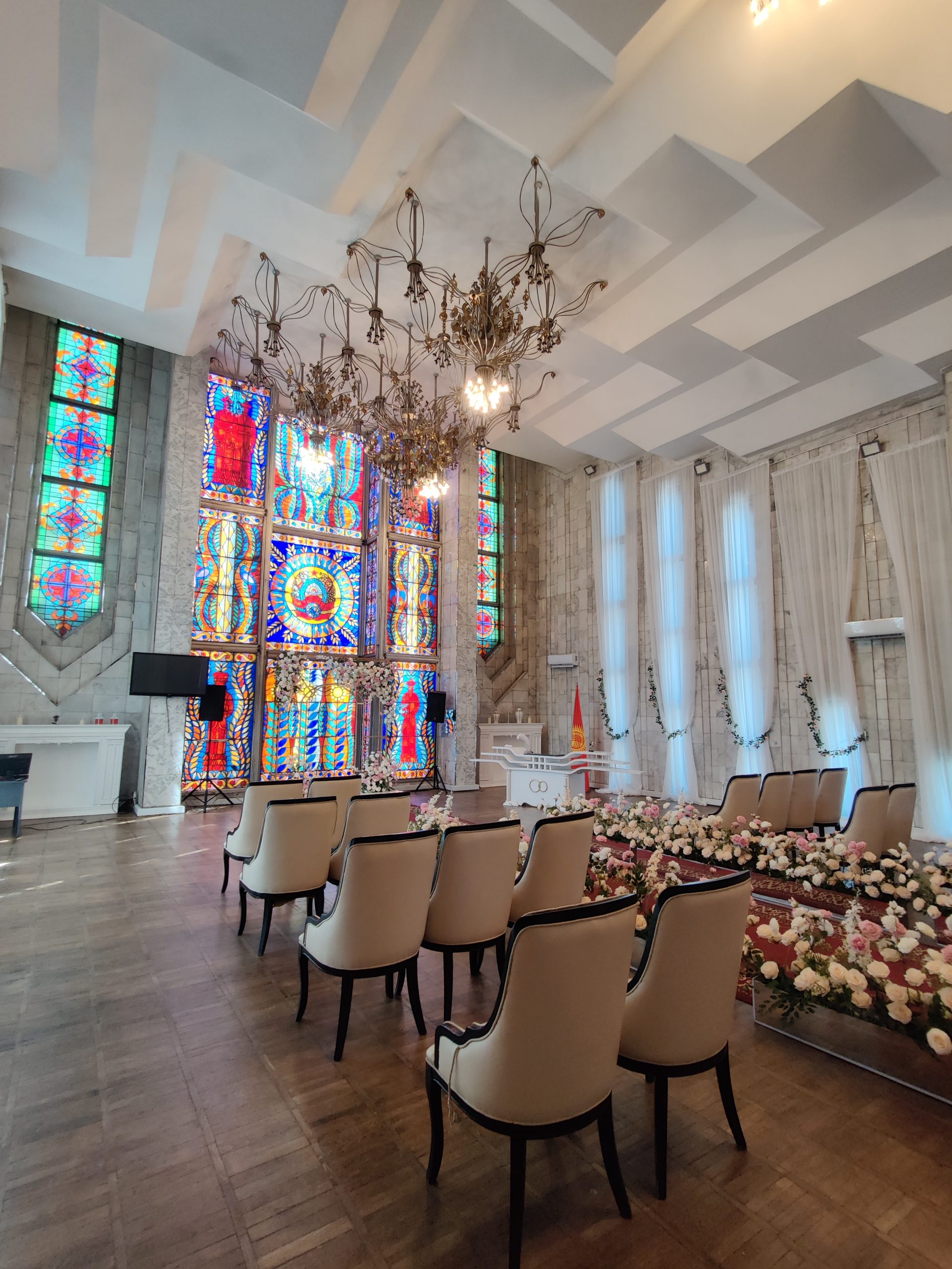 This striking Brutalist structure is where many Kyrgyz citizens have historically registered their marriages. Its unique Soviet-era aesthetic makes it a notable stop for architecture enthusiasts. In front stands an impressive (though out of order) mosaic fountain. It’s possible to also visit the inside of the palace, and if you’re lucky you can peep inside the main wedding hall – it has a stunning stained glass window still featuring a Soviet hammer and sickle emblem!Â