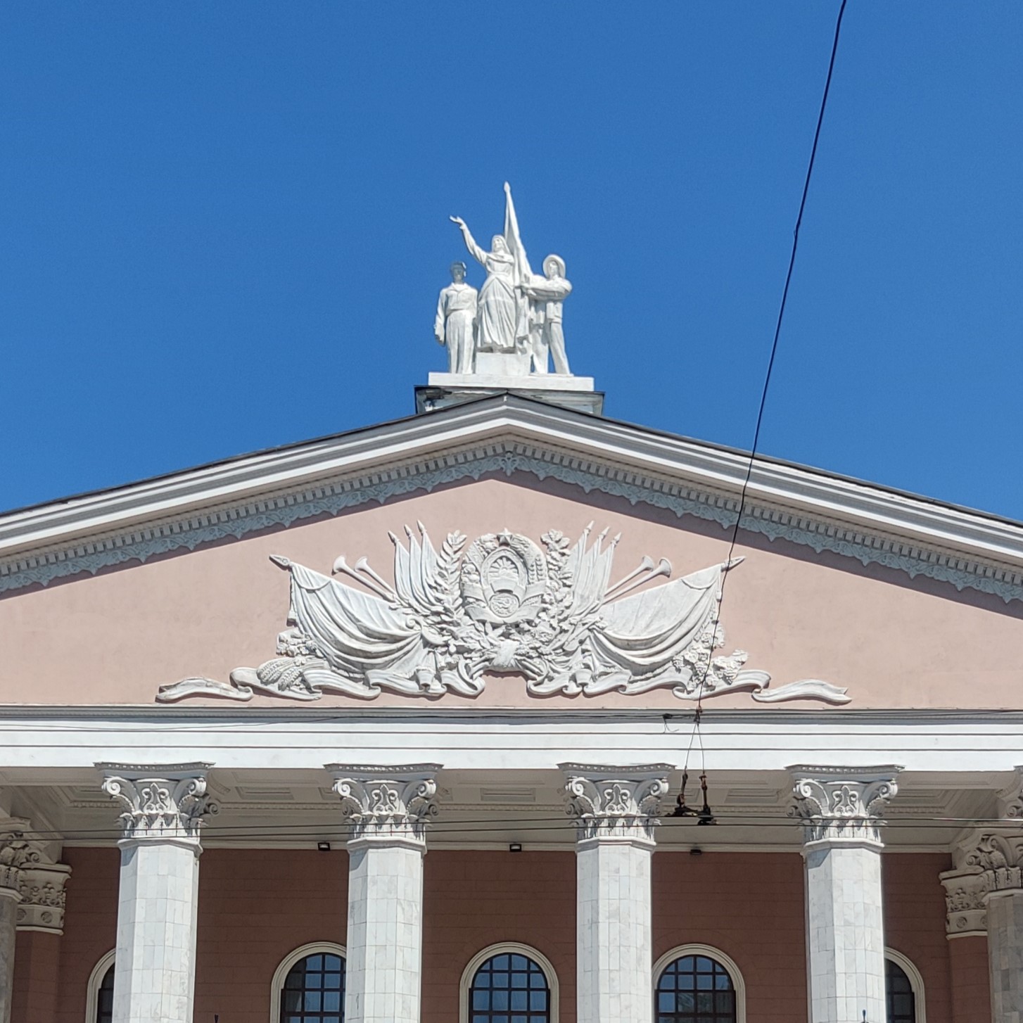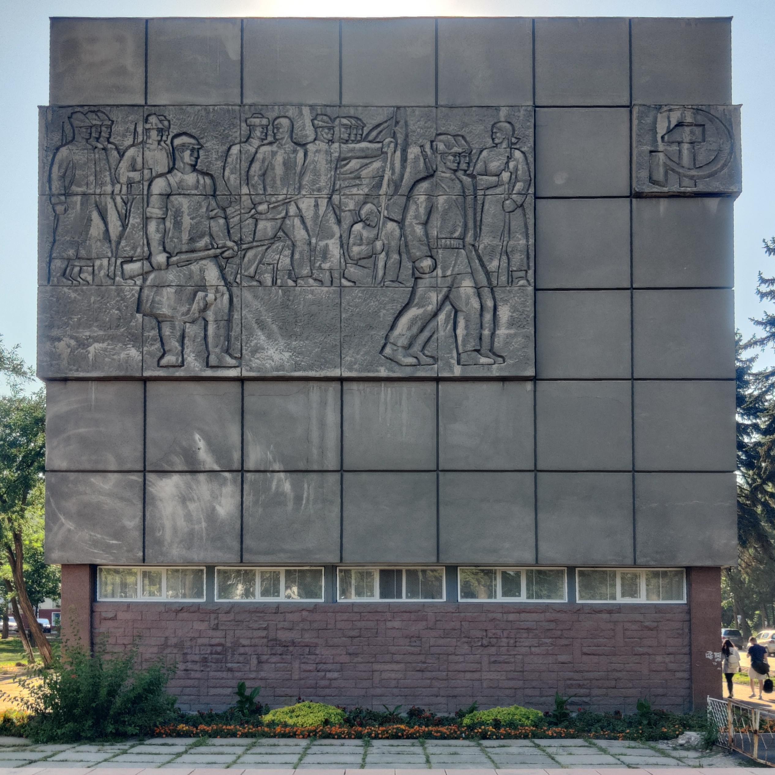 Following Chuy Avenue, you will pass a not-to-miss personal favourite on the right side. The crescent shaped entrance of the theatre features, among others, a coloured relief of a cosmonaut, a hammer and a sickle, a star and elements of the soviet everyday life.