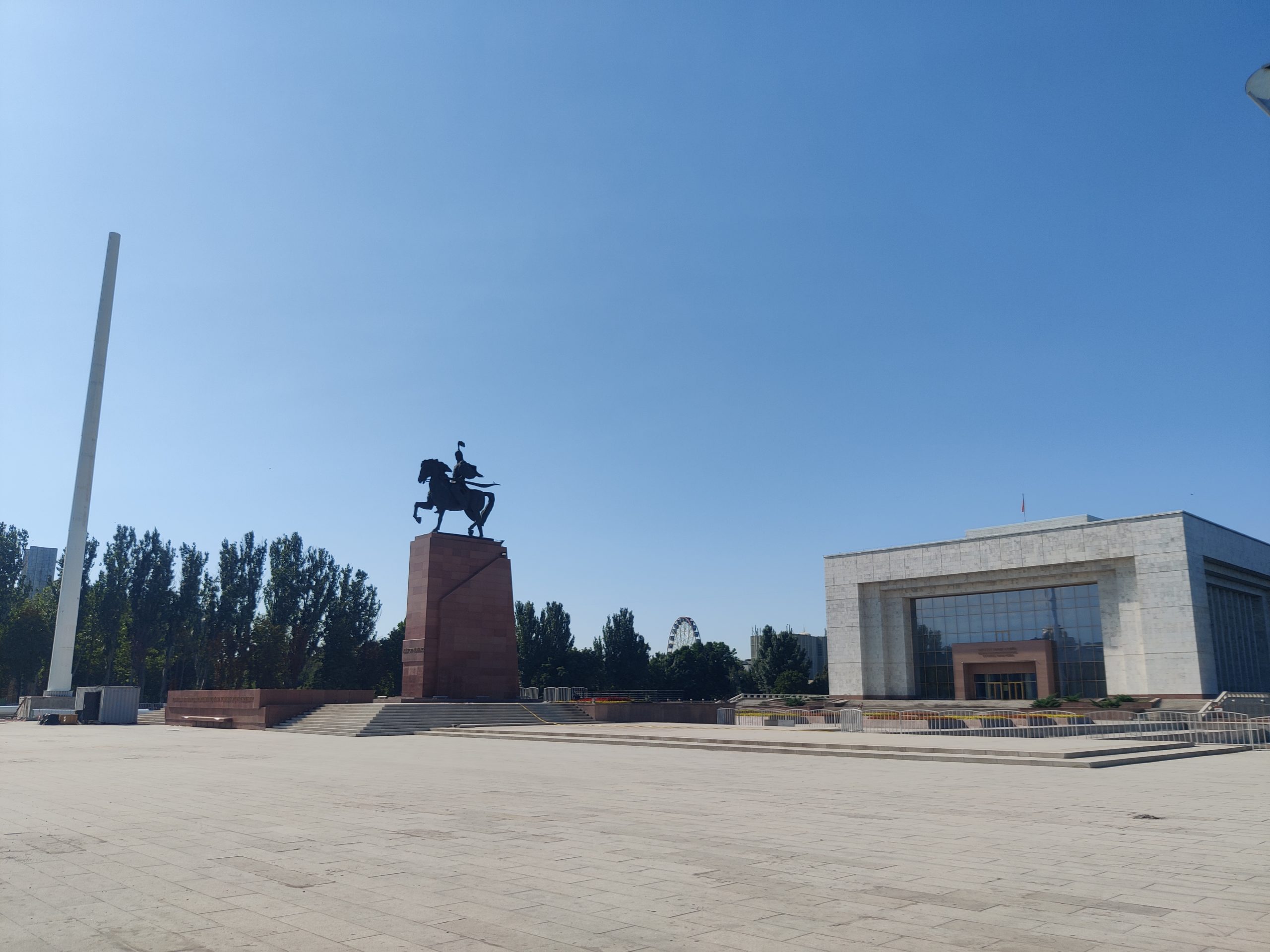 Continue walking down Chuy Avenue to arrive in the heart of Bishkek: Ala-Too Square. It was originally built in 1984 and received the name “Lenin Square”. Although the Lenin statue has been moved, the square still retains its Soviet layout and grand architectural scale, serving as a key gathering place for national events.