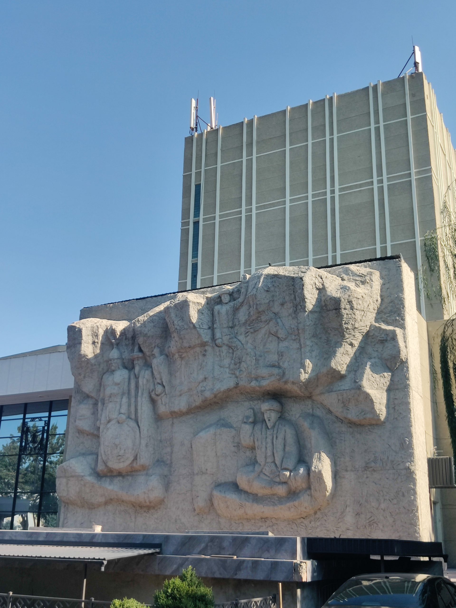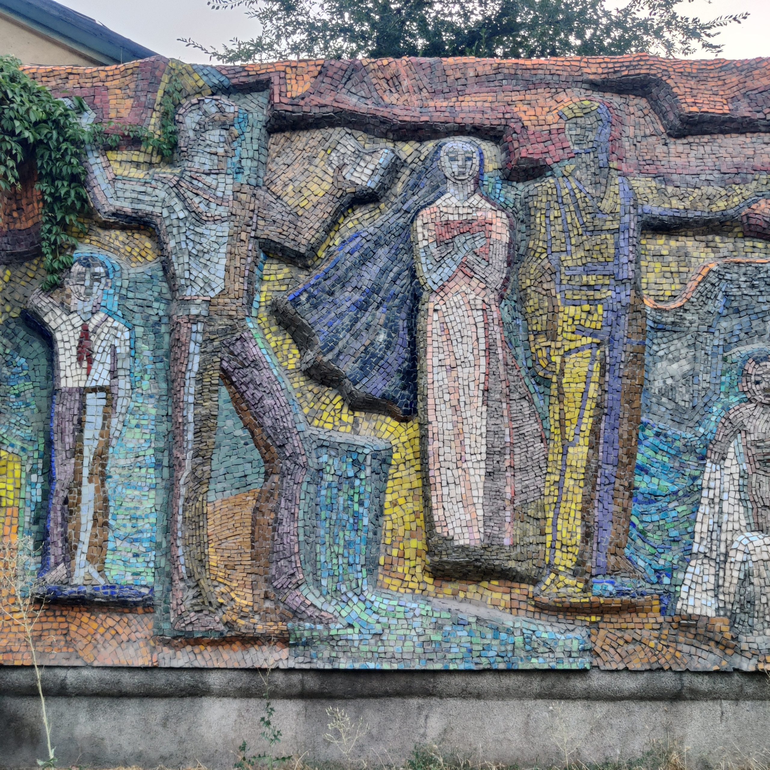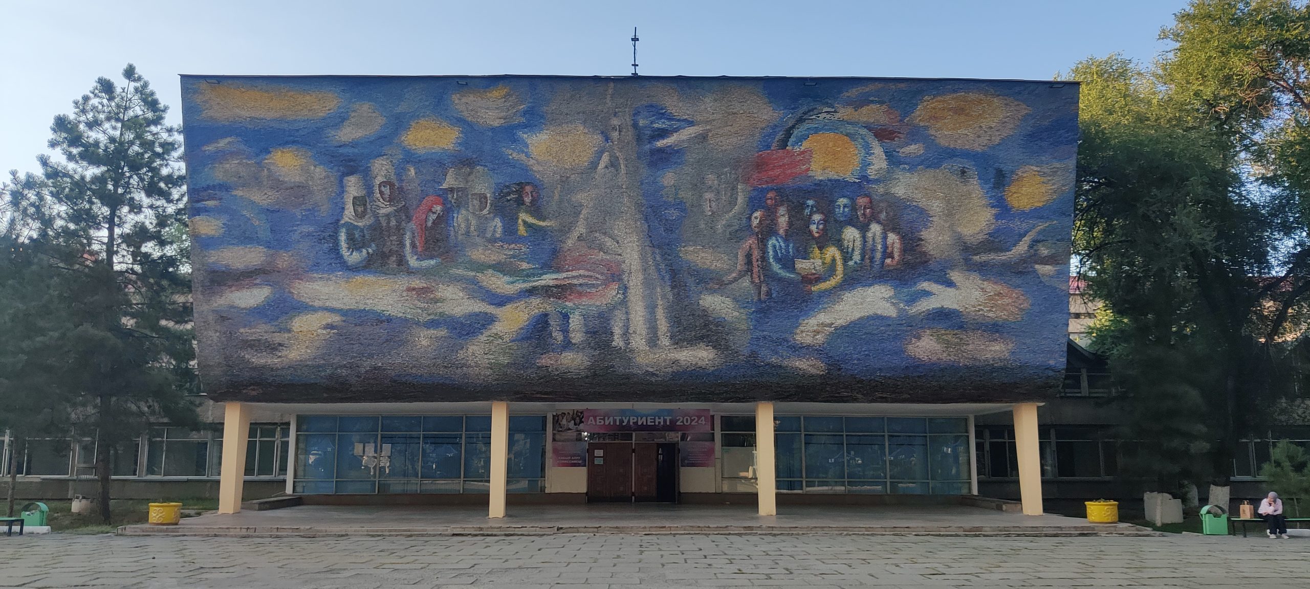 Head left at the Nation Fathers Monument. The next stop is located further ahead on this street (Ryskulov street). Being one of Bishkek’s most stunning Soviet mosaics, this piece captures the idealized Soviet vision of progress and transformation. The intricate work and vivid colors in the style of a Van Gogh, make it a must-see! You can find the meaning of its composition here.