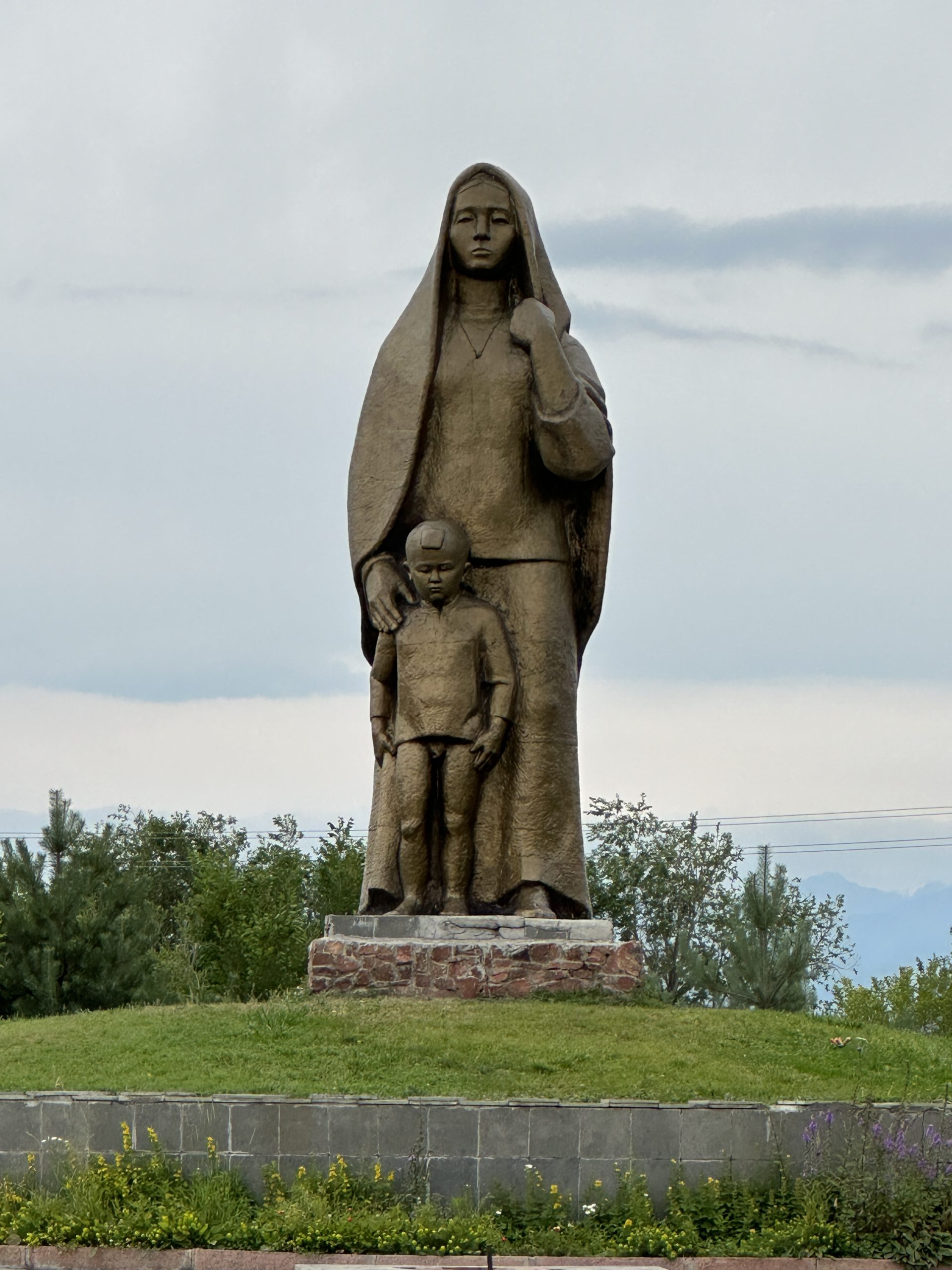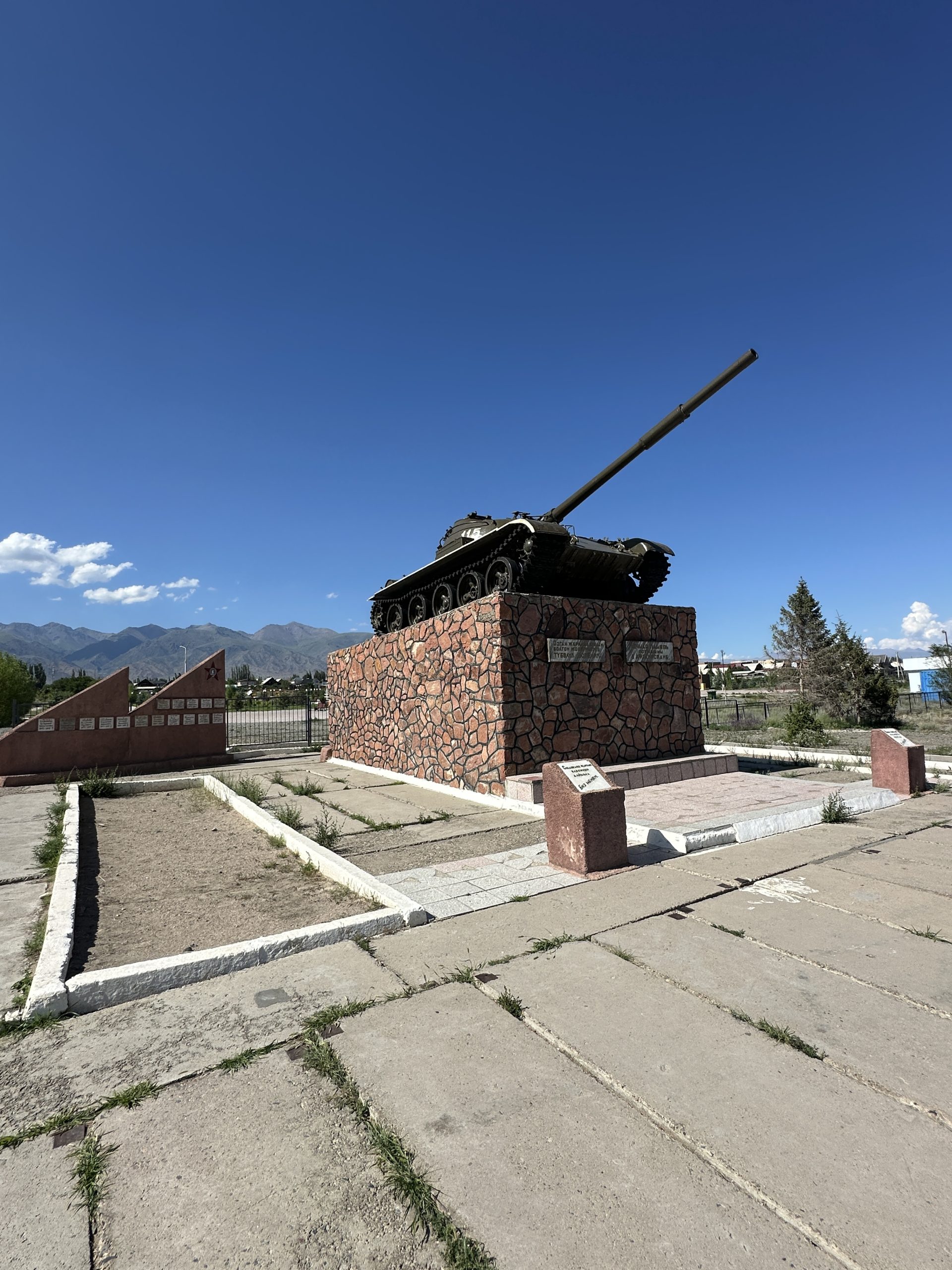 На 42.45934, 76.20637 вы найдёте мемориал Второй мировой войны — скульптуру женщины с ребёнком. Рядом установлен Вечный огонь, который, к сожалению, больше не горит.