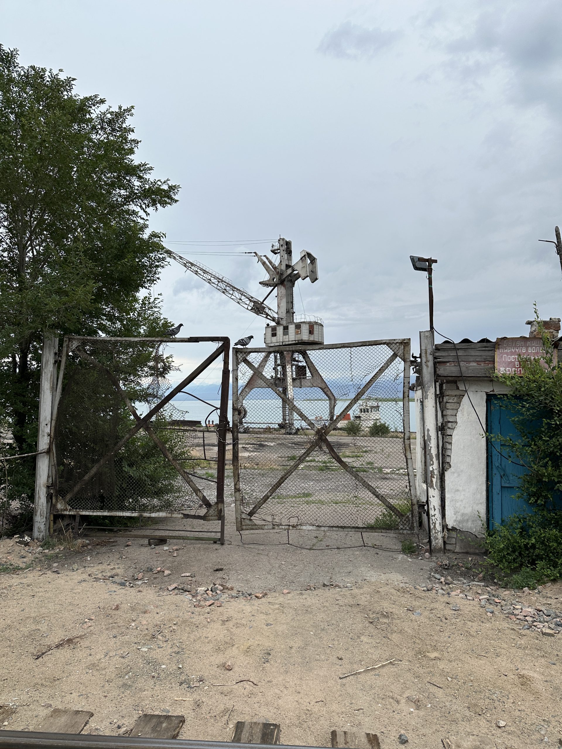Чтобы добраться до старого порта, лучше припарковаться здесь: 42.451222, 76.184972, а затем продолжить пешком, следуя вдоль железнодорожных путей. Имейте в виду, что территория порта формально считается закрытой, так что приближаться к кранам или лодкам официально не разрешено.