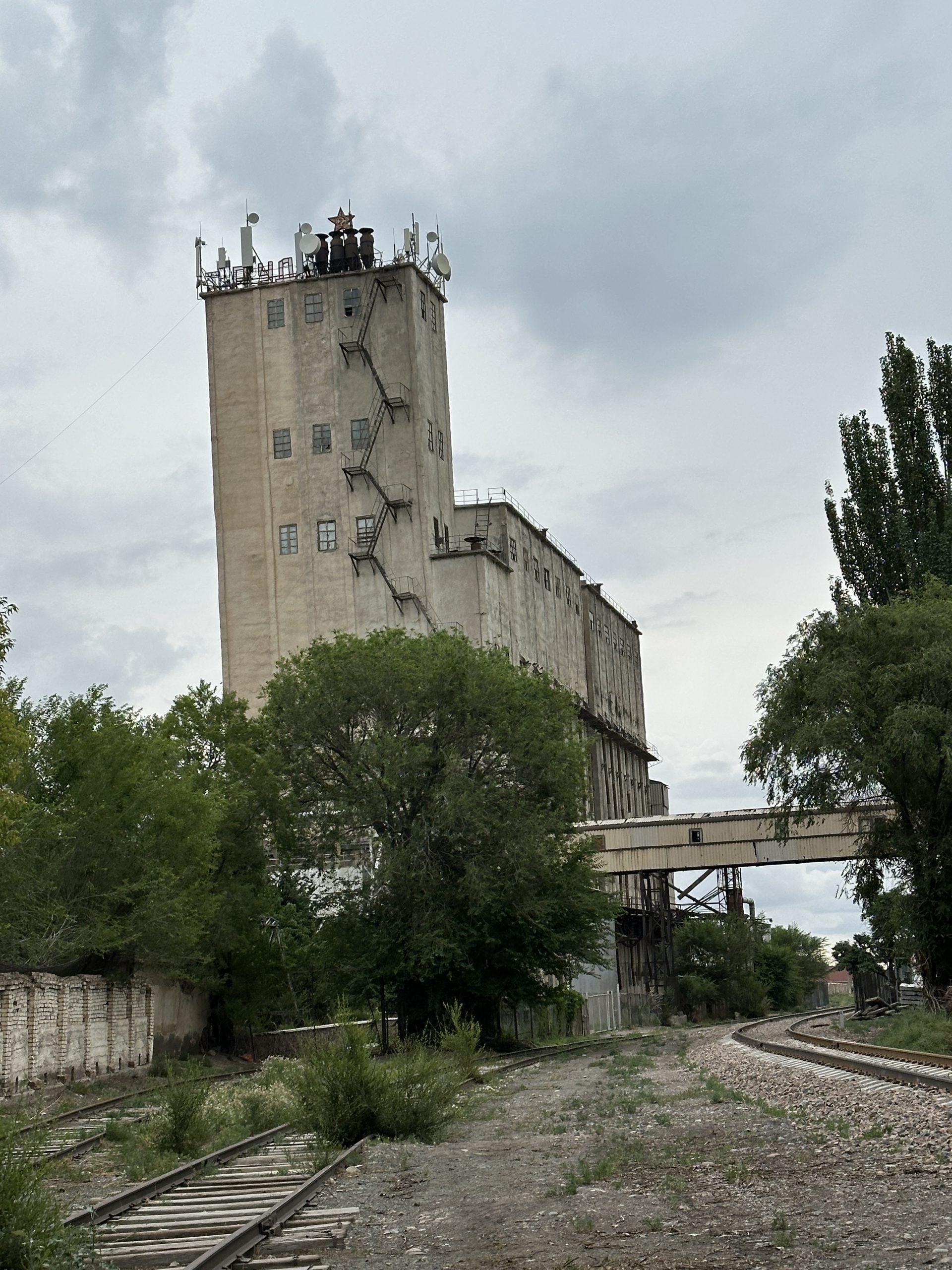 Прежде чем направиться прямо к порту, рекомендуем заглянуть в бывший Агитпункт, расположенный неподалёку (примерные координаты: 42.45338, 76.18921). Агитпункт (сокращение от «агитационный пункт») — это советский центр пропаганды, задачей которого было идеологическое воспитание населения, особенно в сельских и промышленных районах. Такие центры были частью широкой кампании по распространению коммунистических идеалов и укреплению лояльности к государству. У входа до сих пор стоит бюст Ленина — его невозможно не заметить.