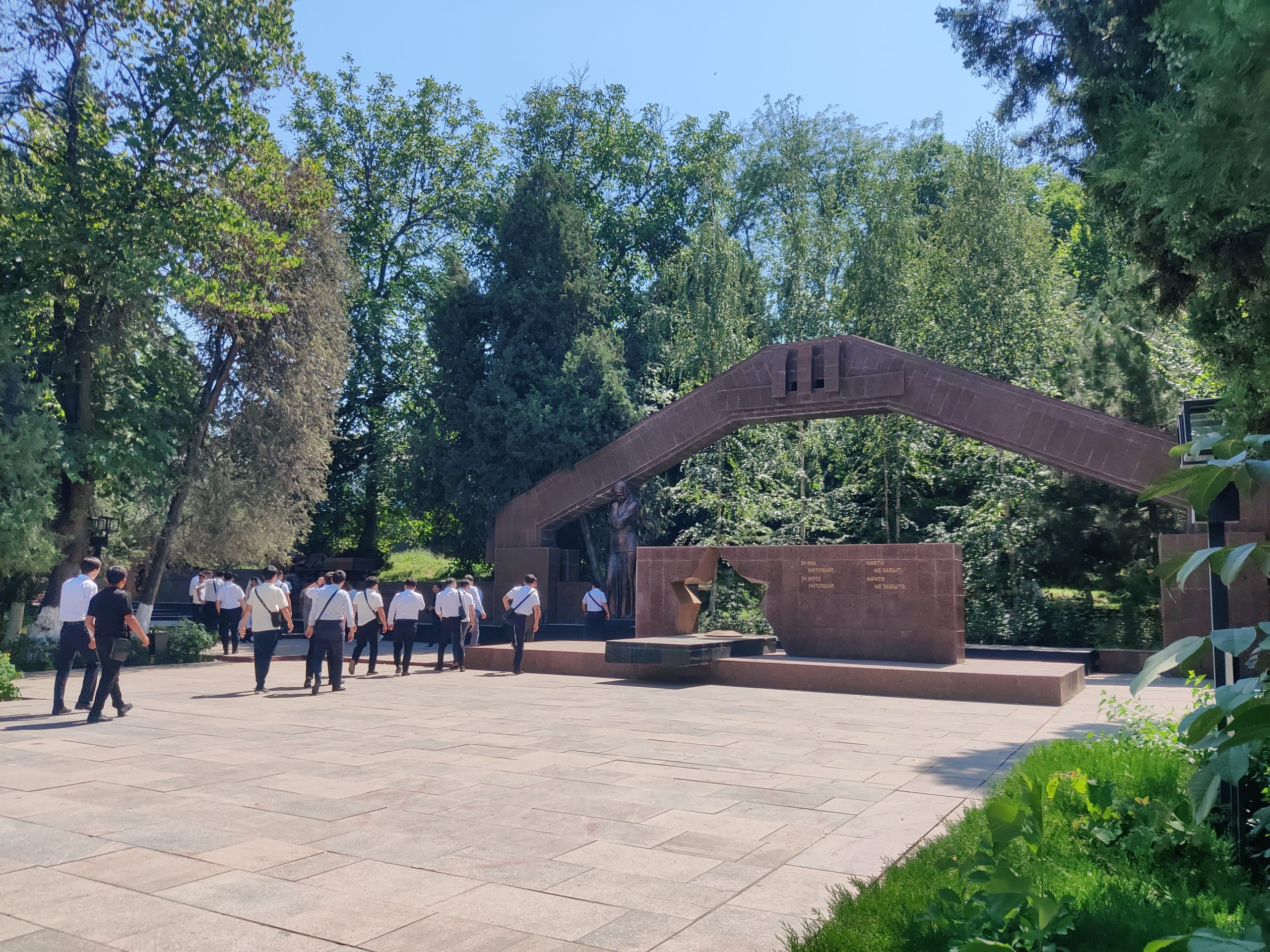 Our tour begins with a humble yet poignant Soviet war memorial, located in a park near the Osh city square. A cut-out star, worn by decades of foot traffic and time, evokes the memory of those who fell in the Great Patriotic War. It’s a simple stone, yet it sets the tone: the Soviet Union’s presence in Osh wasn’t just ideological — it was lived, fought, and remembered. Explore the small park and you’ll also find a Chernobyl memorial – a nice addition to start the tour!