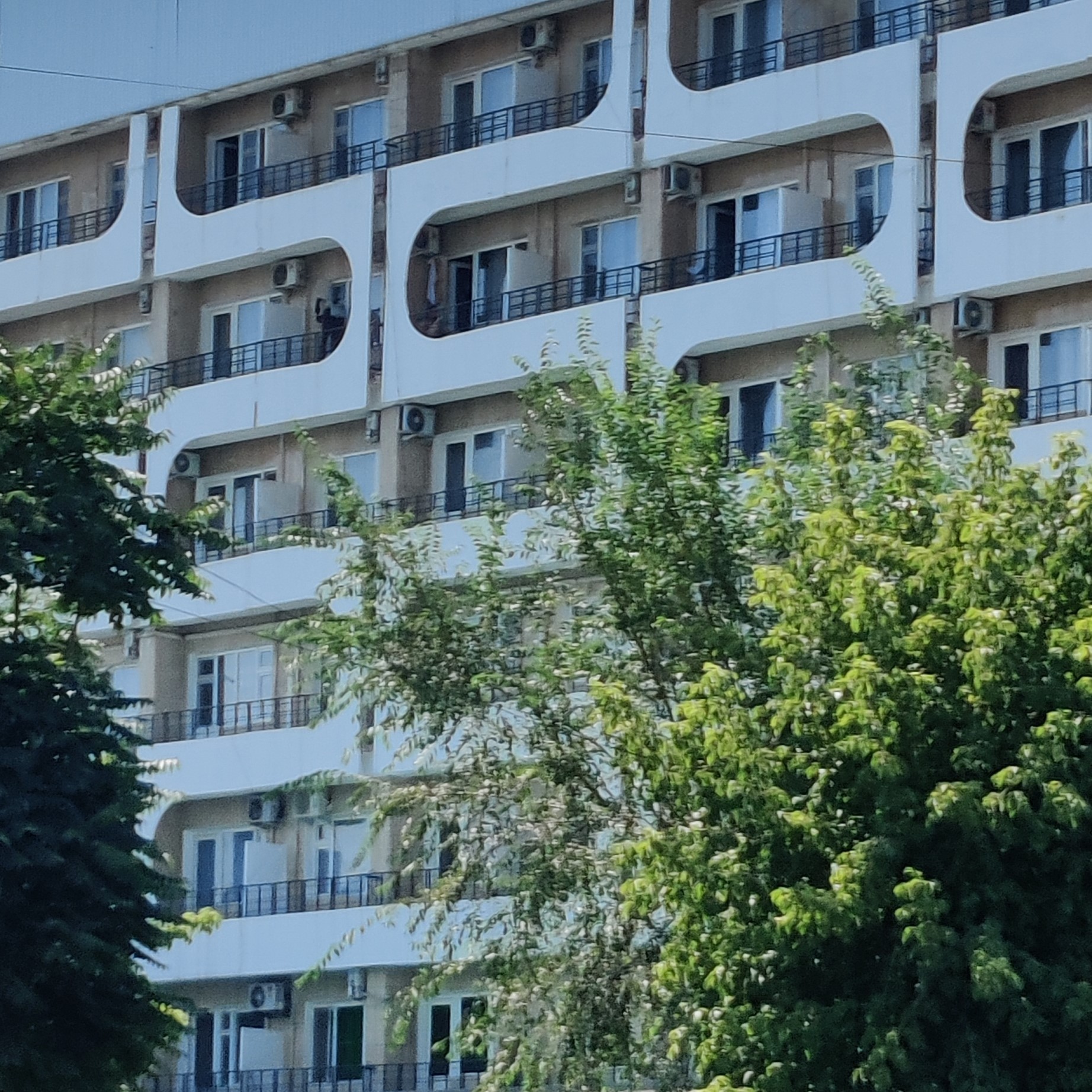 Around the corner, a monolithic hotel looms like a Brutalist battleship. A relic of state-planned tourism and official delegations, its modernist lines and concrete slabs feel frozen in time. Peeking inside may reveal dusty chandeliers and faded wallpaper — Soviet chic, left to fade.